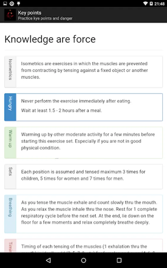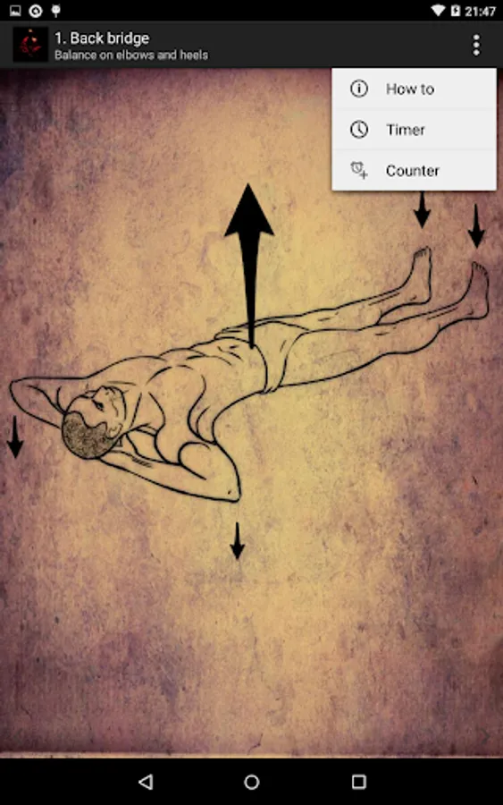 Each exercise contains a description of the implementation and a detailed drawing. You can use the built-in timer or counter with practice.