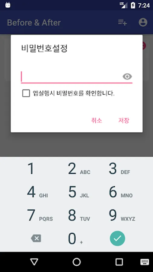 - 비밀번호 설정 기능이 있어 앱을 시작할때 비밀번호로 시작할수 있습니다.