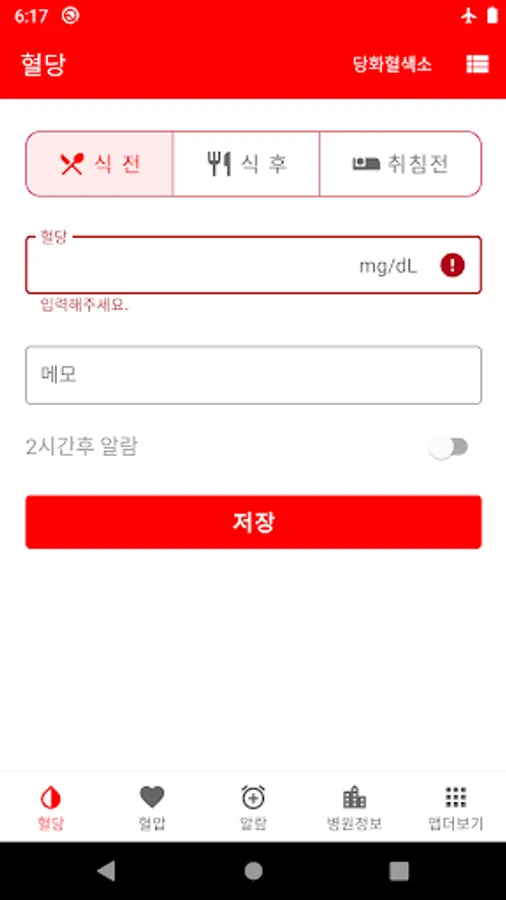 - 식전 기록시 2시간후 알람을 설정하고 식후 혈당을 기록할수 있습니다.