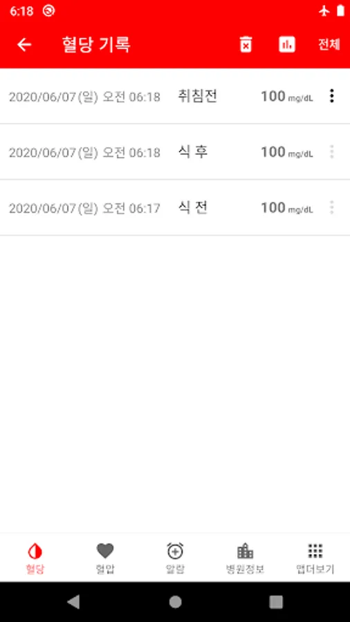 - 혈당 기록 목록과 그래프를로 확인할수 있습니다.
