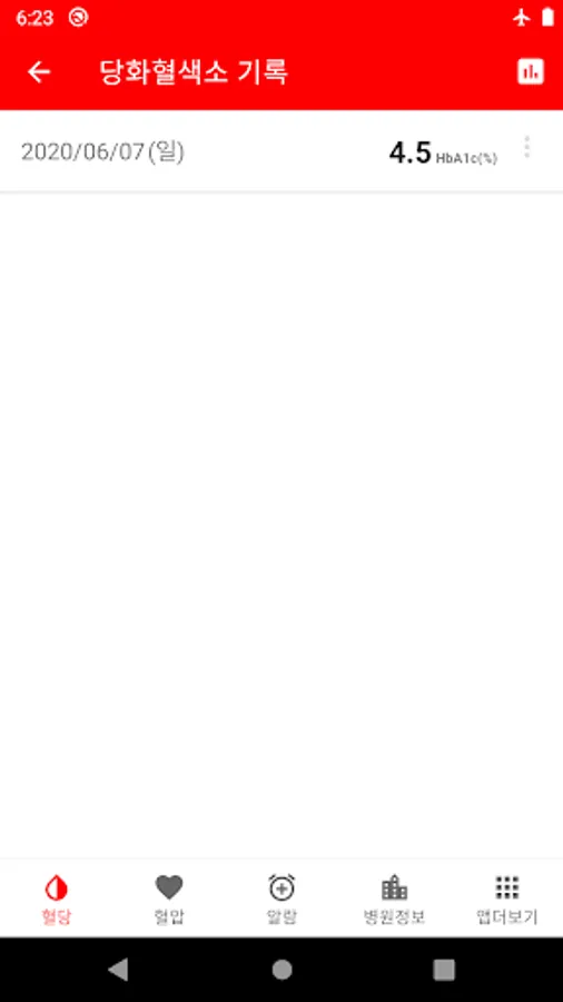 - 당화혈색소 기록 목록과 그래프로 확인할수 있습니다.