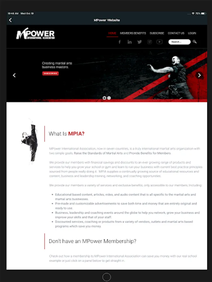 MPower International Association (MPIA) is a business organization with two main commitments to our members: raising the standard of martial arts and providing true benefits. We strive to use our vast network of martial arts industry members to develop and circulate ideas, services and products that address the growing needs of today’s business demands.