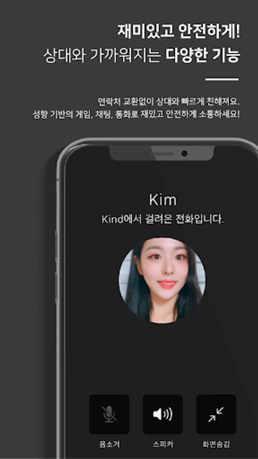 Are you worried about what kind of story to talk with the person you were introduced to? Or are you embarrassed to disclose your contact information and personal information to someone you don't know yet? Do not worry. Kind provides a variety of features that allow you to quickly get to know someone without exchanging contacts. Have fun and safely communicate within the app with the opposite sex connected through propensity-based games, chatting, voice calls, and video calls that allow you to quickly get acquainted with your opponent!