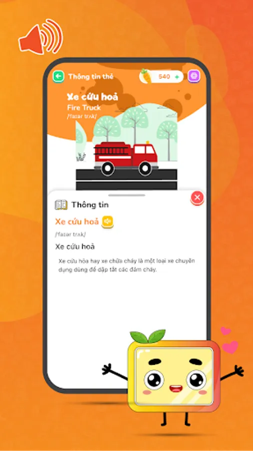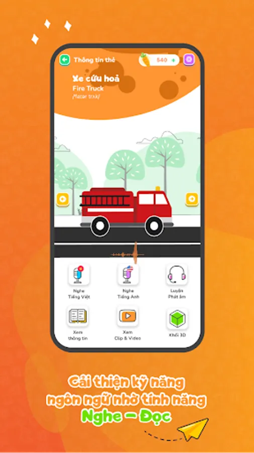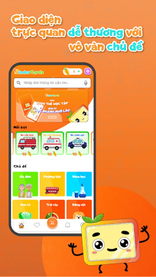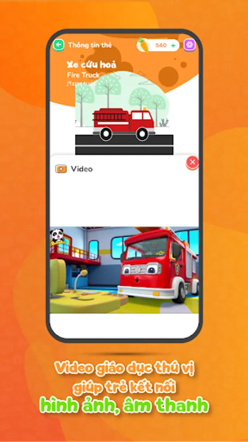 In addition, KinderCards supports English - Vietnamese bilingualism, a standard pronunciation assessment tool for native speakers to help children understand and learn English more easily and naturally. With this feature, your baby will have the opportunity to hone his language skills comprehensively.