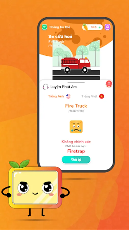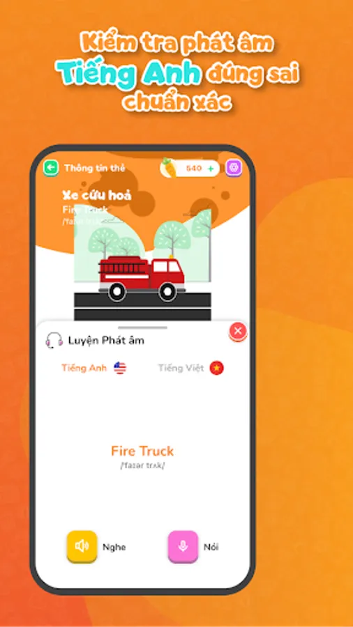 - Integrated English - Vietnamese bilingual, evaluate correct pronunciation