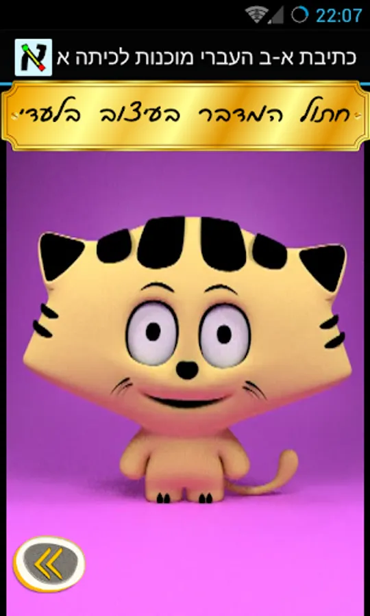 The application is built in the style of a dialogue with the cute kitten that appears at the beginning and explain your child how to use the application. At the end of each letter writing, there is a picture of an item whose name begins with the letter practiced. The application moves automatically between letters when writing the letter completes successfully. During practice kitten appears and encourages the child to continue learning, in addition to short-effects are entertaining the child.