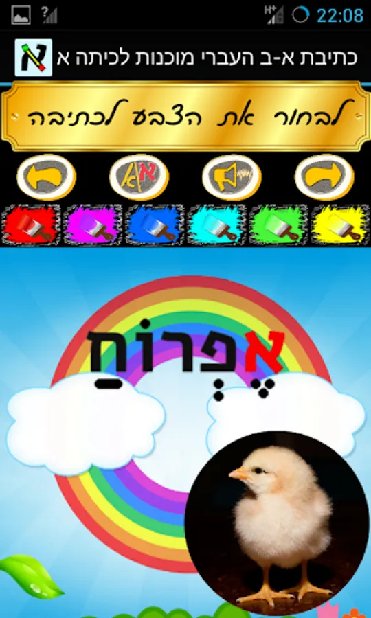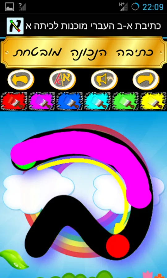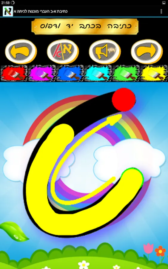 The application is free, and contains all the letters of the Hebrew alphabet of two types wrote in capital letters and wrote Monday.
