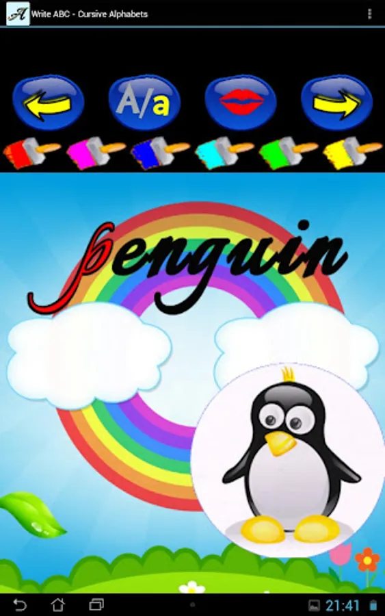 With bright colours and interactive elements, Write ABC - Cursive Alphabets helps to keep your child curious and with a hunger to learn. Our application will help to prepare your child for his or her upcoming education from ages 4-6. The app teaches your child to correctly trace letters with their finger - a skill that they can then translated to a pen or pencil when the time comes. With accompanying images and a choice of colours to paint with, Kids ABC is guaranteed to keep your child interested from day one to a time that they no longer need the application and knows to write all abcs. Tracing of abcs is separated into easy steps accompanied by bright arrows and our unique big green and red circles signing where to begin and where to stop tracing.