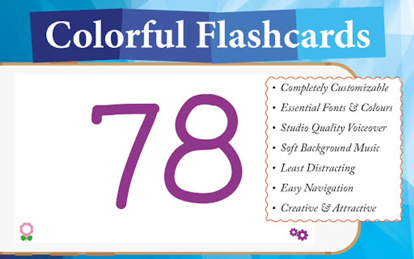 Study reveals that the kids grasps information long before they starts to speak. Numbers Flashcards are provided for 0.8 - 2.5 years age group children.