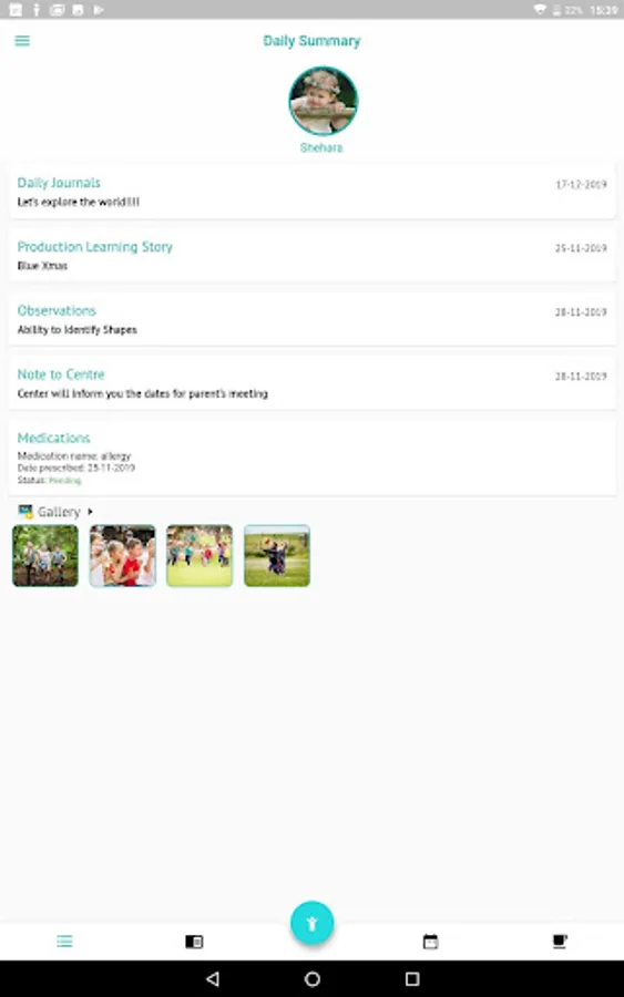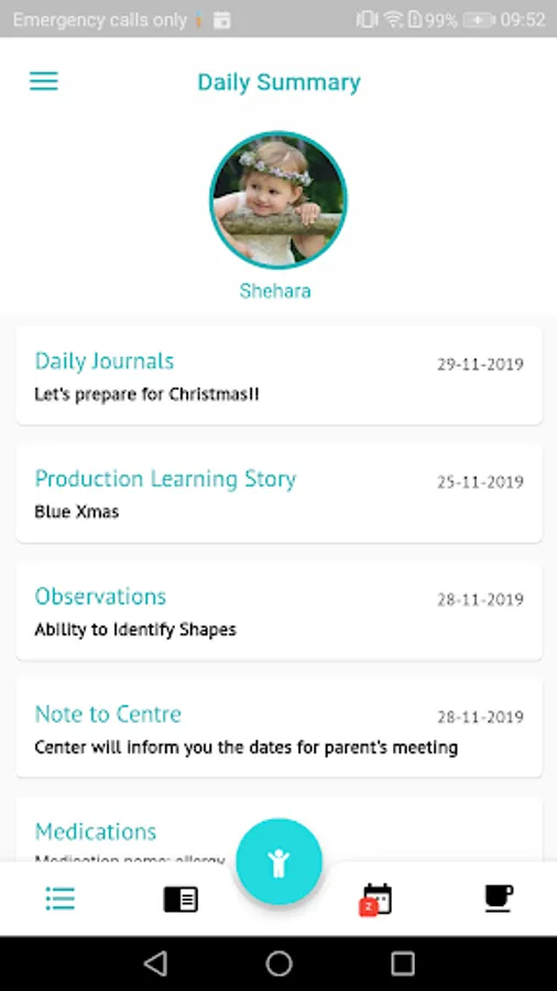 - Viewing children's Daily Charts (meals, nappies, sleep, bottles etc) with past history