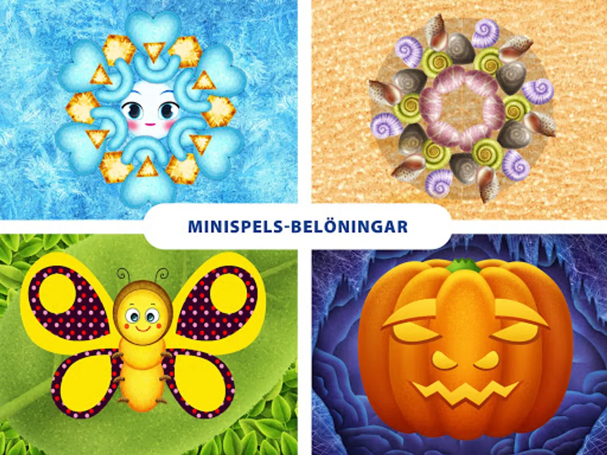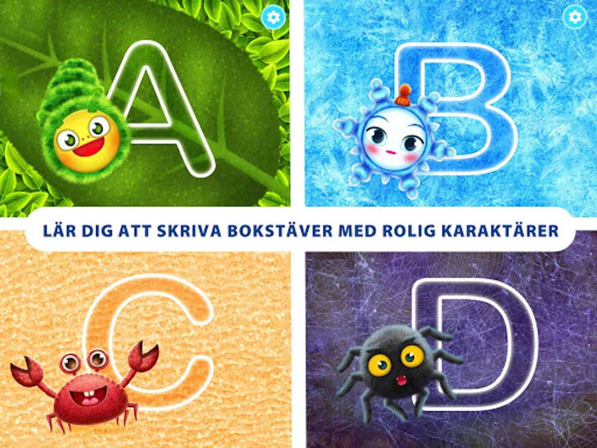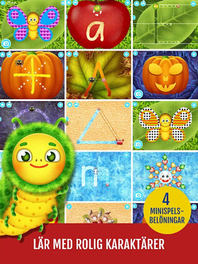 After passing a number of letters your child gets a reward - they can help the larva to develop into a beautiful butterfly or get söfligan shape jewel-like ice crystals. These mini-games helps to develop the child's motor skills, while they have fun!