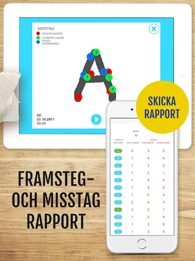 • Play the video of how your child write letters in Parents' Corner (in the stats tab for each student) to follow the write speed and the literal creation of three selected types of errors.