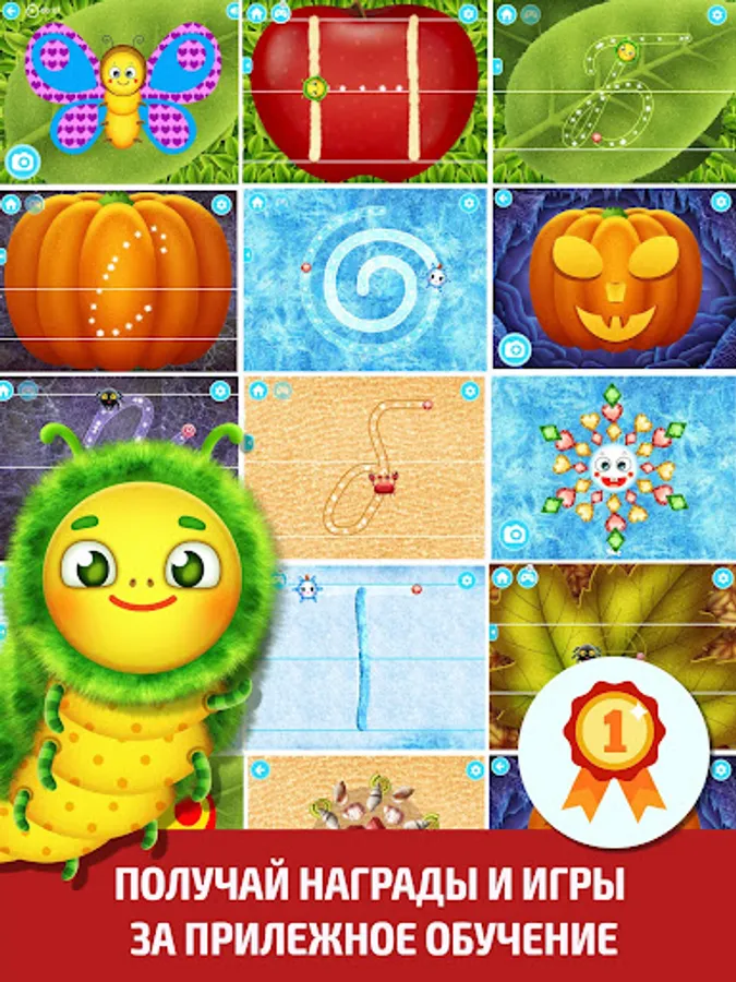 ● MINI-GAMES "Gather snowflake", "Paint a Butterfly", "Cut out your pattern on the pumpkin", "Sea Kaleidoscope" - a great motivation for further success. The more we learn, the more we play!
