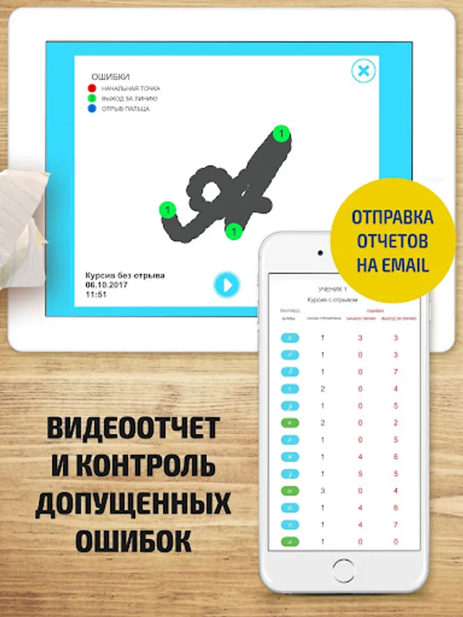 Appendix teacher controls the learning process. Parents and teachers is available statistics child education specifying the amount of exercise, mistakes and even videos of the letters! The report can be sent by e-mail.