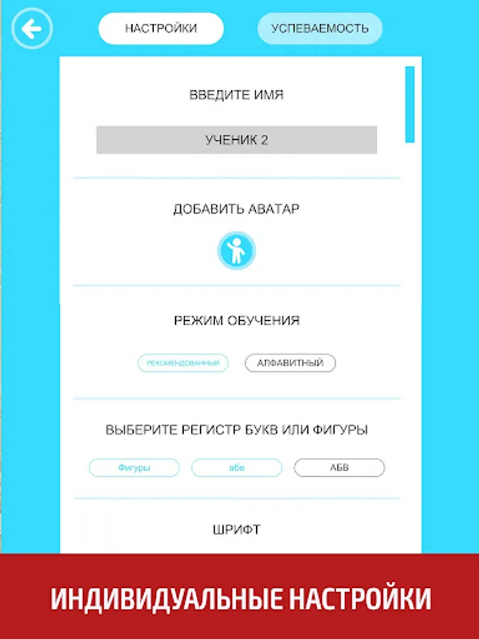 ● Ability to add up to 30 pupils and set personal settings for each of them.