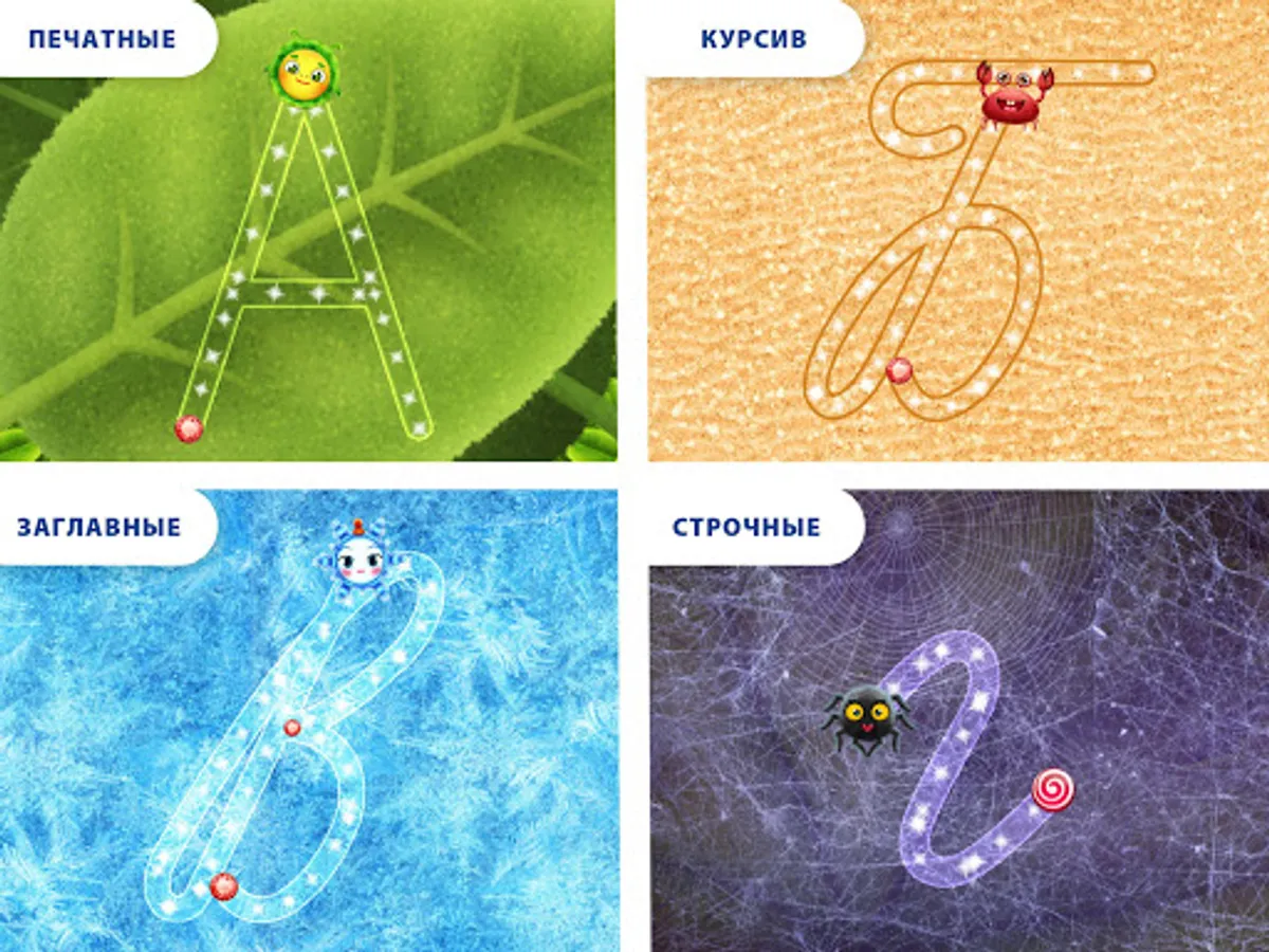 With the app "Bukvonyamki" your child to learn how to write letters. Funny characters help him. Together with snowflake baby will write on glass, covered with frost. To help the caterpillar eat leaves and chew on an apple and furry spider weave a network and crab "output" in gold letters on peske- fun learning!