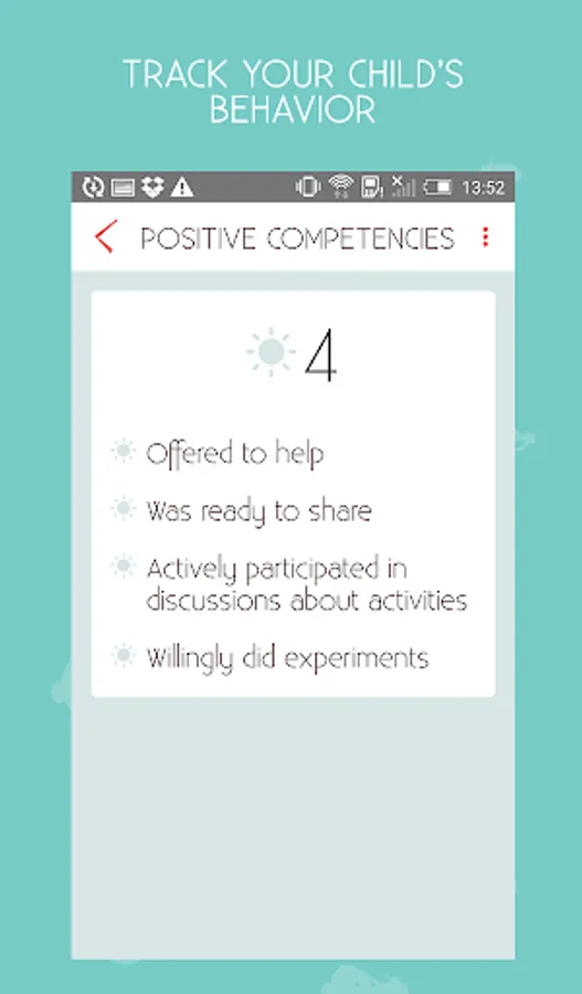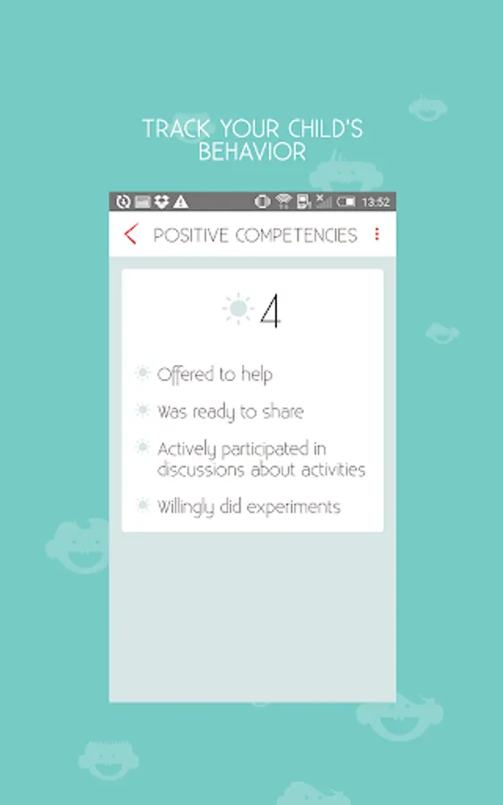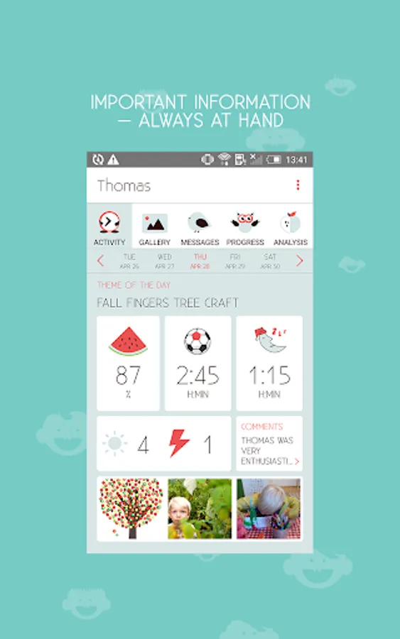 • keep parents in the loop: real-time information for parents about their child's general condition, achievements and well- being;