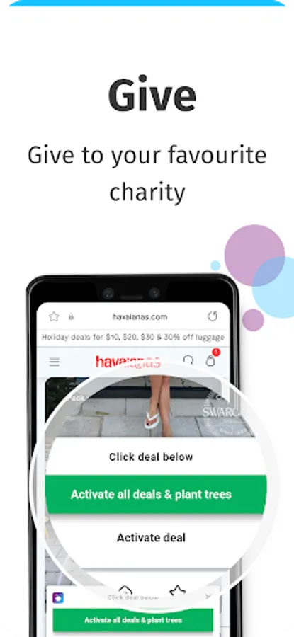 Leave the donation to us—choose the sustainable or charitable cause you want to support with your purchases. We'll handle the rest, so you can shop and make a positive impact.