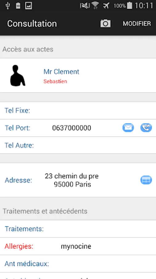 - Enter the details of your patient: phone, address, email, history, allergies, treatments.