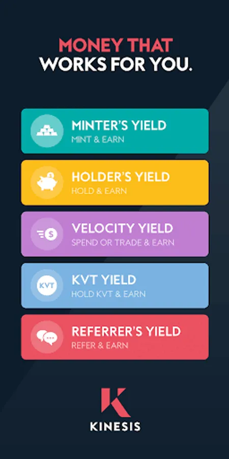 Earn a monthly yield on every transaction you make, paid into your account in gold and silver. Yields are Shariah-compliant and non-debt-based. Learn more about our yields via our YouTube channel or dedicated yield page https://kinesis.money/yields/