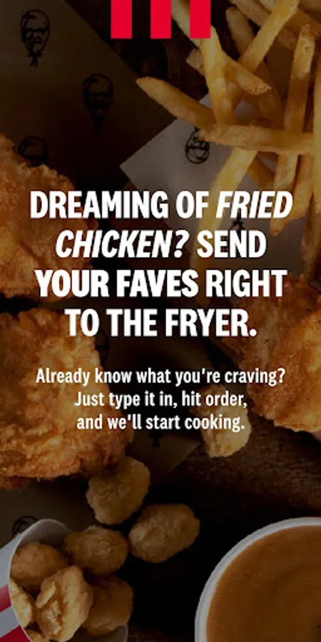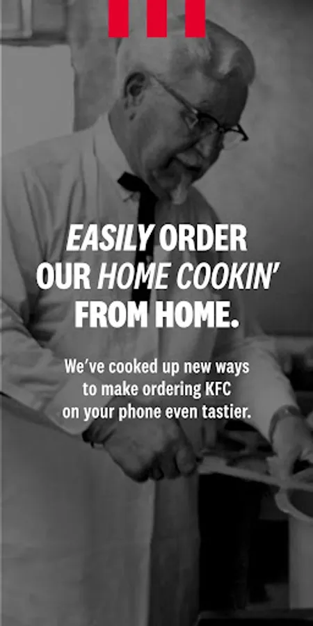 • Easily order our home-cookin’ from home. We’ve cooked up new ways to make ordering KFC on your phone even tastier.