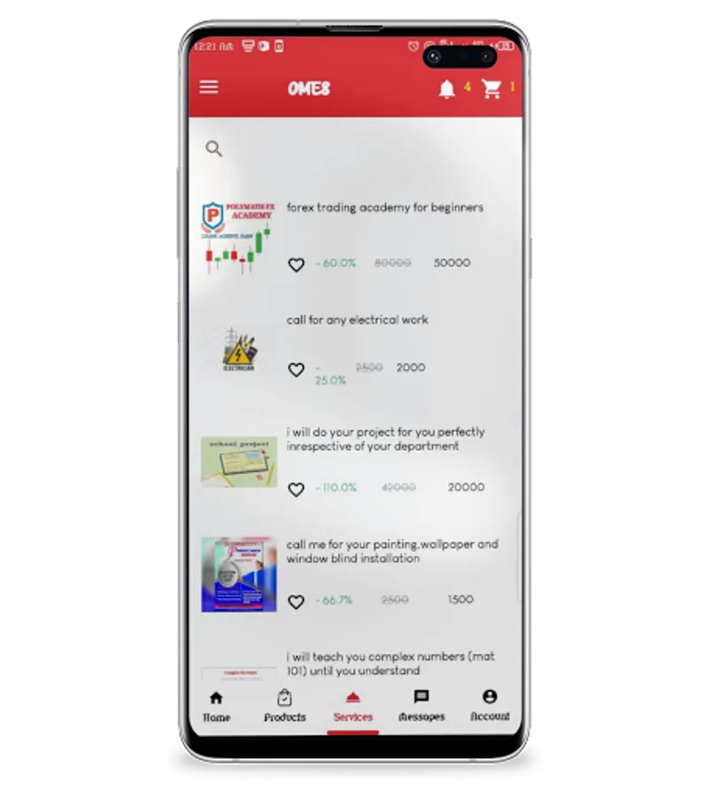 We create a platform where you can find literarily anything you are looking for like products and services offered by fellow students on campus. If you need any services like laundry service, baking service, decoration, electrician etc you don't need to go further check OMES.