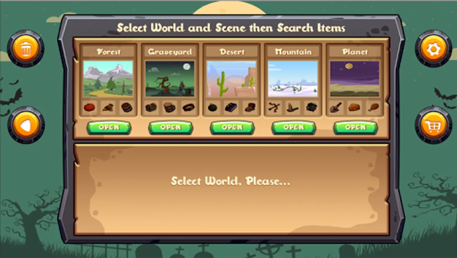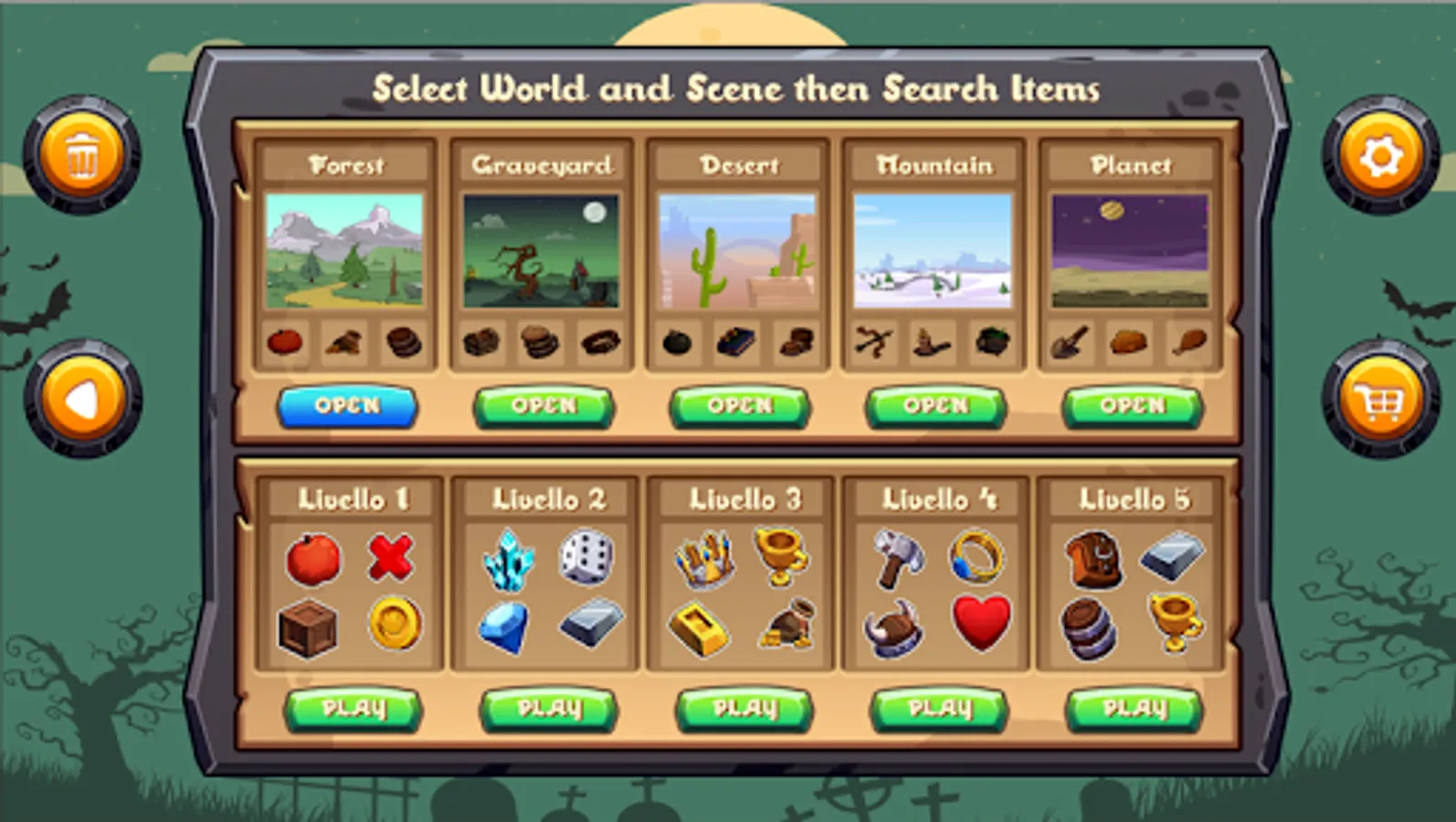 Explore 25 levels set in 5 different scenarios. Start with your favorite scene, but remember to complete each level by finding all the lost treasures.