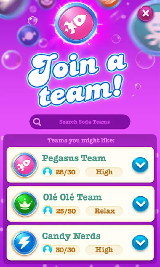 Compete against other players to see who can complete levels the fastest, or work as a team in the 4 in a Row game mode, where players work together for Sodalicious rewards!