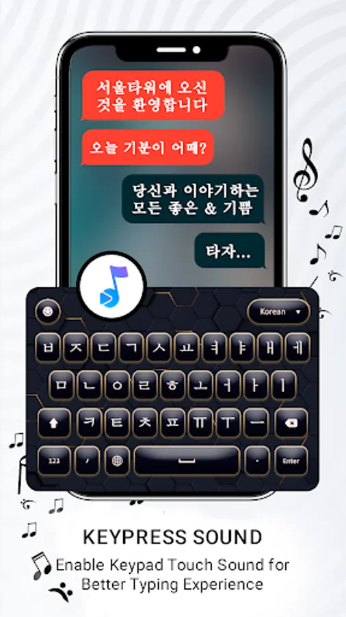 Now typing in Korean language made easy with keyboard in Korean Language. Also get various designed themes for Korean Keyboard. And switch from Korean to English language from keyboard directly. Also available sound for key-press.