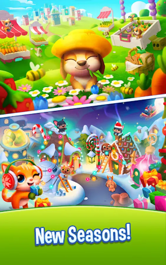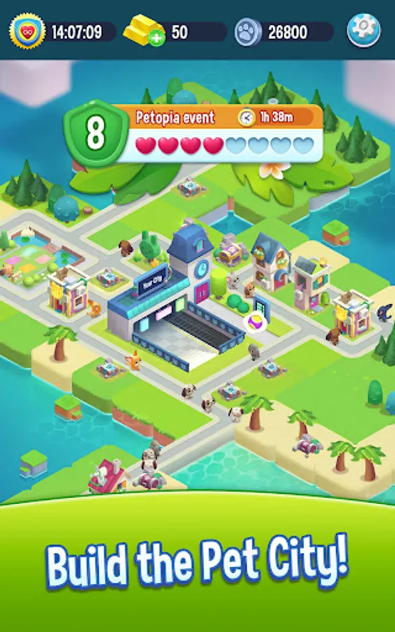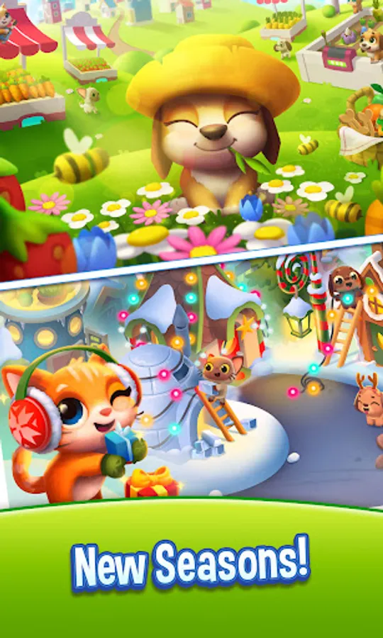 Don’t leave your animals out in the cold, send them off to Petopia City! Clear puzzles to build a city for your rescued pets and visit them in their new home.