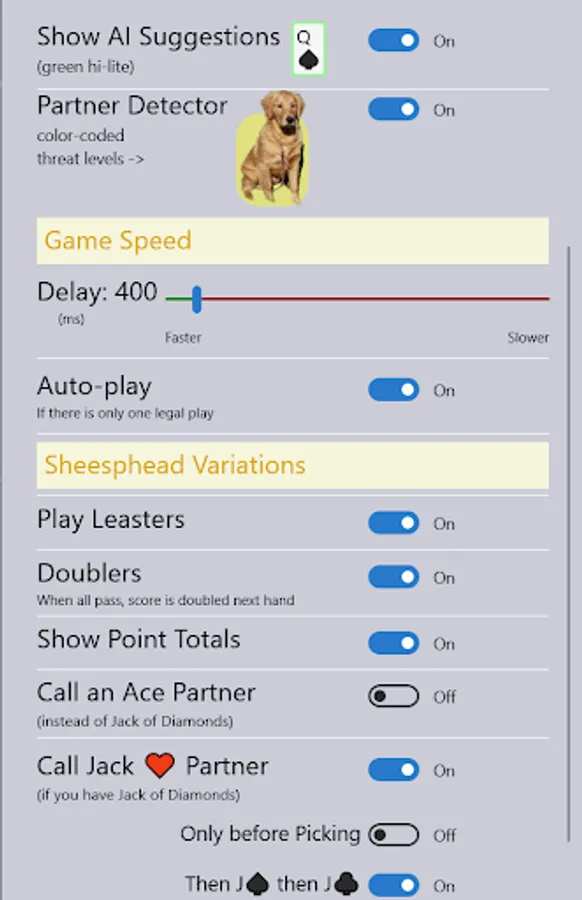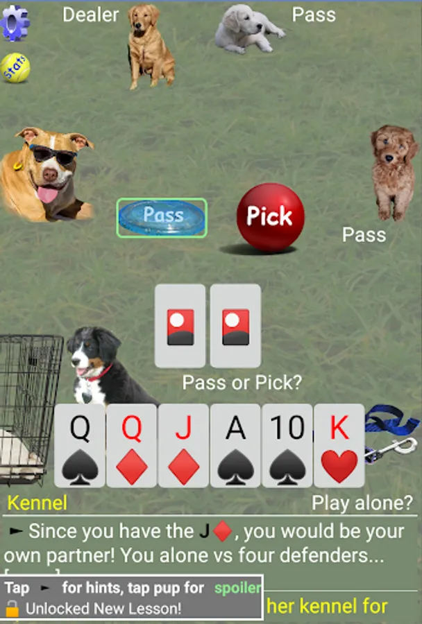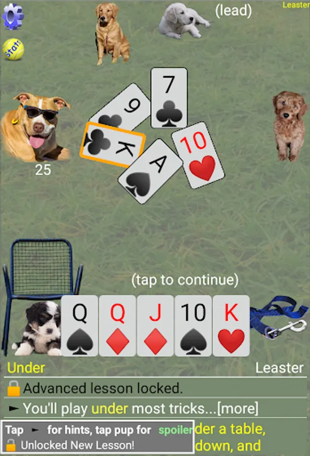 To measure your progress, you will be training a puppy which will advance through its lessons as you learn Sheepshead (aka Schafkopf). Puppy raising tips come from 16 years of service-dog training experience.