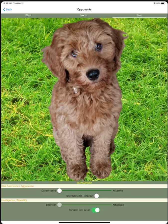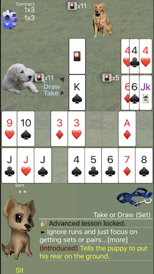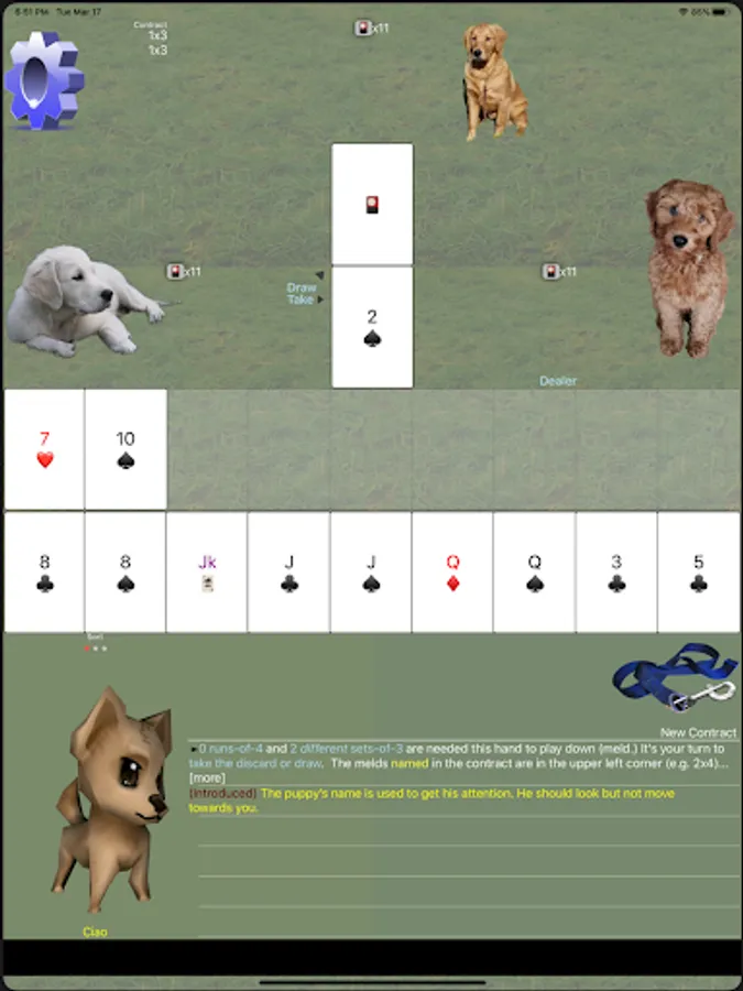 K9 Shanghai Rum is a puppy-themed version where you play against 3 AI opponents. To measure your progress, you will be training a puppy which will advance through its lessons as you learn Shanghai Rummy. Puppy raising tips come from 16 years of service-dog training experience.