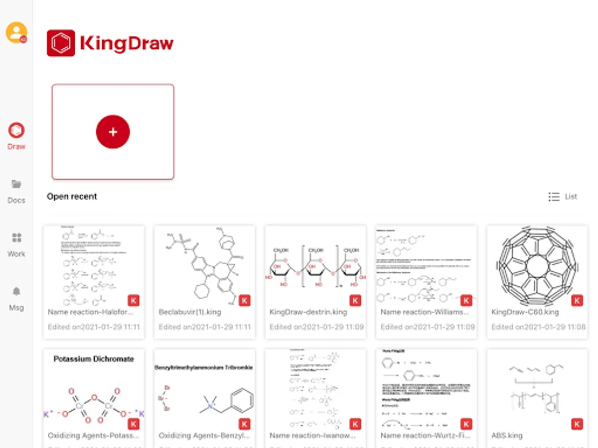 KingDraw, as will provide strong software support for chemical research, more chemical-related functions, and new structure drawing modes to connect Android& IOS devices and PC, realizing rapid transformation from KingDraw to Office, ChemDraw and picture. And finally, you will build an all-platform chemical structure system through your KingDraw cloud account.