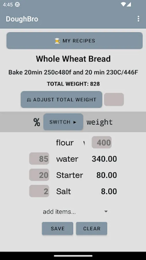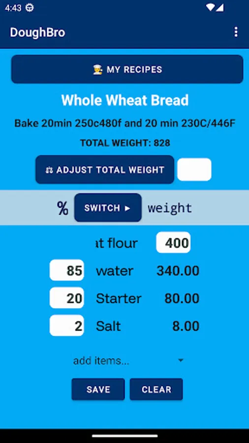 Whether you are a home baker or a pro in the kitchen, DoughBroLite helps you build and manage recipes using the baker’s percentage method—your way.