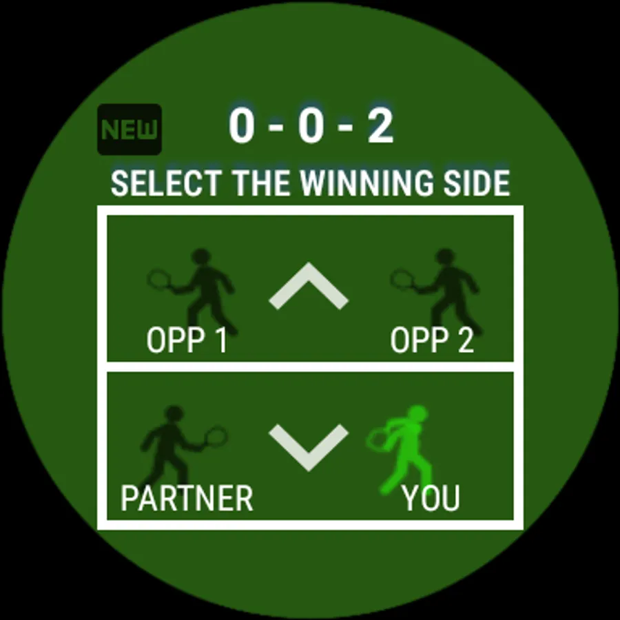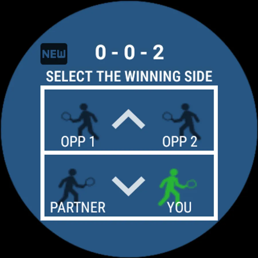 Useful app, but few comments: (1) touch to score on upper team seemed not sensitive, missed may be 4 out of 10 times which is annoying, but touch on my own team works most of the time. (2) Un-do touch button will be useful, sometimes wrong score entered due to touch issues. (3) The A B C D player letters are really small on the watch screen. (4) Physical buttons for scoring will be nice.