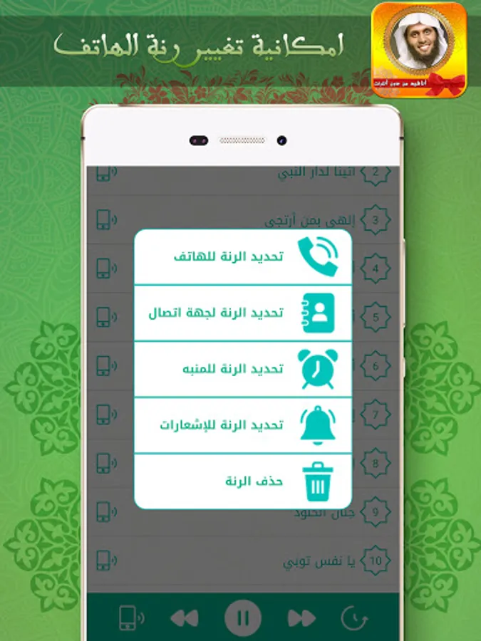 • Turn the voice of Sheikh Mansour Salmi directly when making a call or receive