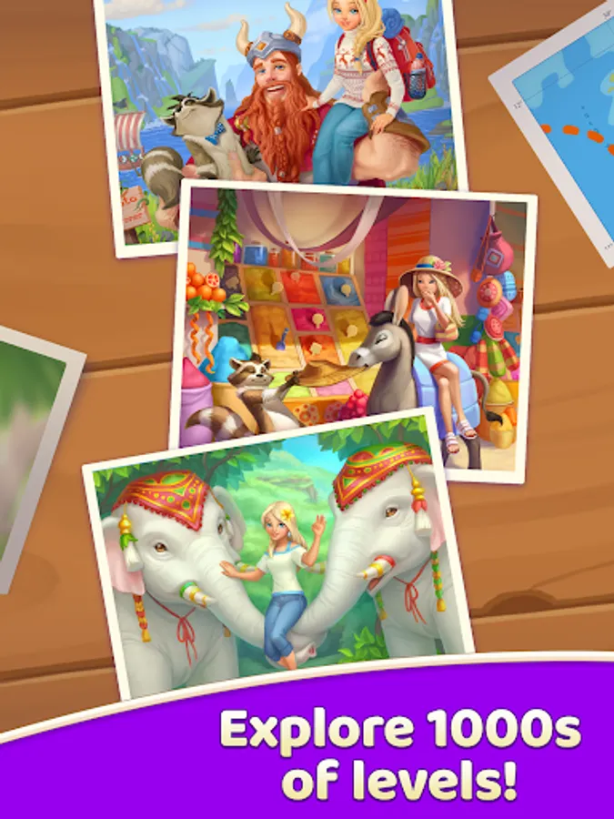 Play level by level and enjoy the changes in the countries. Victories in three-in-a-row allow you to unlock new locations and landmarks. Collect and check out the most beautiful countries of the world in one game!