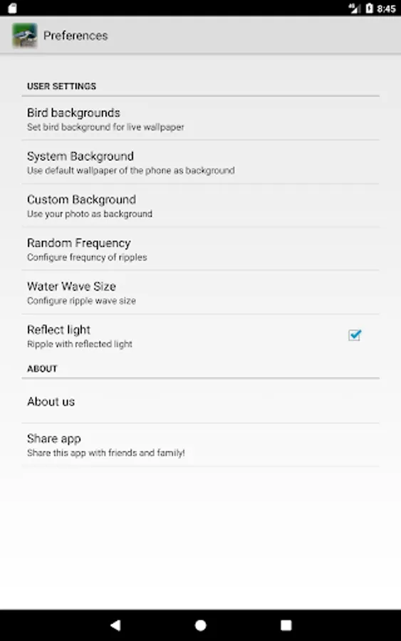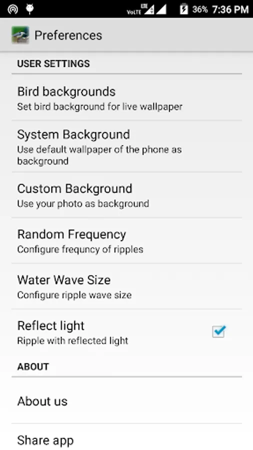 This is a free HD Birds live wallpaper with amazing water ripple | droplet effect.