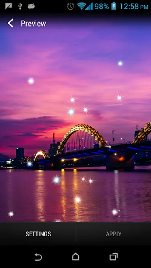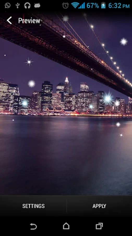 ★ You can choose your favourite city skyline/bridge wallpaper as background with shiny stars!
