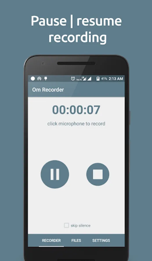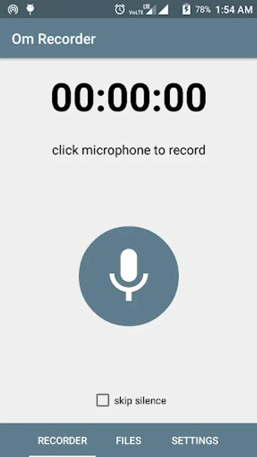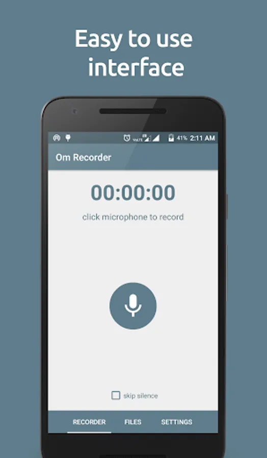 Om Audio Recorder designed for very high quality long-time sound recording with skip silence feature.