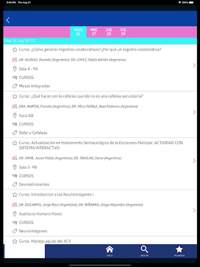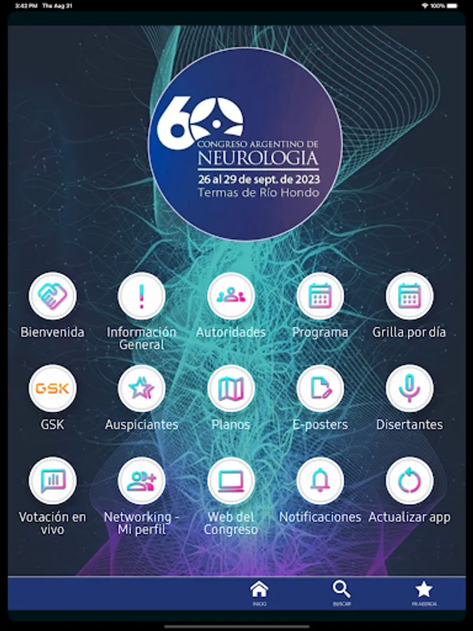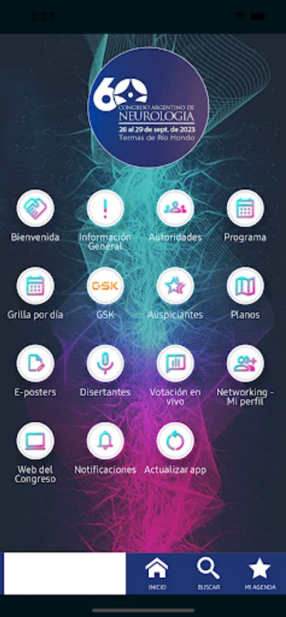 The mobile application of the 60th Argentine Congress of Neurology (CAN) has information on its general content. You can find the following information. - Welcome message from the CAN President.