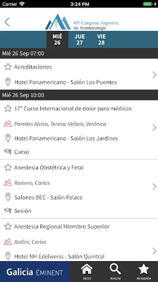 -Permite crear tu propia agenda y recordatorios de sesiones que interesen.