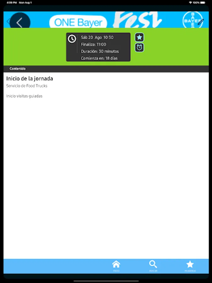 One Bayer Fest is the official app for the open day, organized by Bayer for its employees, family and friends, which will take place on September 17, 2022 at its offices in Sant Joan Despí. The One Bayer Fest mobile application will allow you to see the complete program and related information on the proposed activities, so that attendees do not miss anything and can enjoy this day to the fullest. In addition, from the application you will have access to a map of the venue, notices of the start of activities, instant messaging with registered people and many more features.