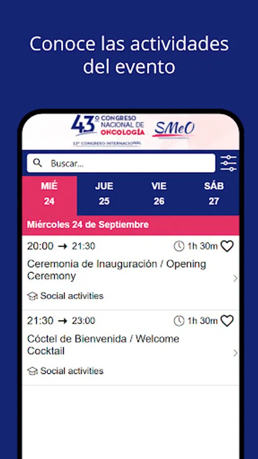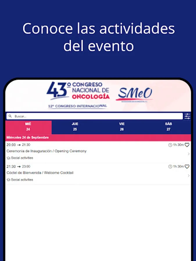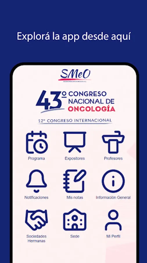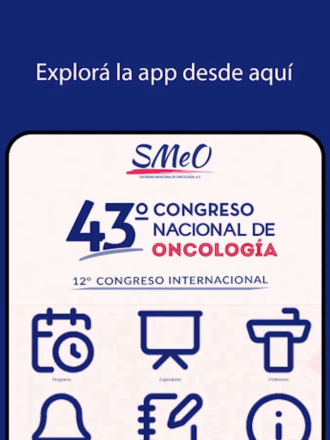 SMeO 2025 is the official app of the 43rd National Congress of Oncology and 12th International Congress, organized by the Mexican Society of Oncology, which will take place from September 24th to 27th in Cancún.