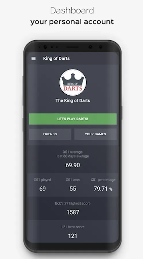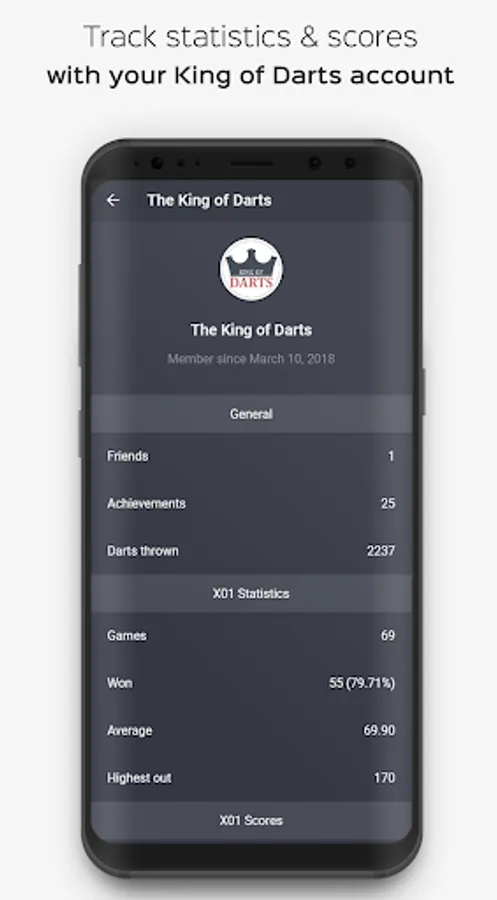 Let's play some awesome darts and build those darts statistics with the King of Darts scoreboard app.