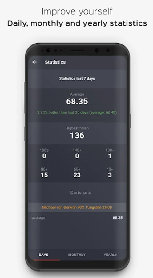 - Advanced darts statistics (stats per month, year, per leg and more!)
