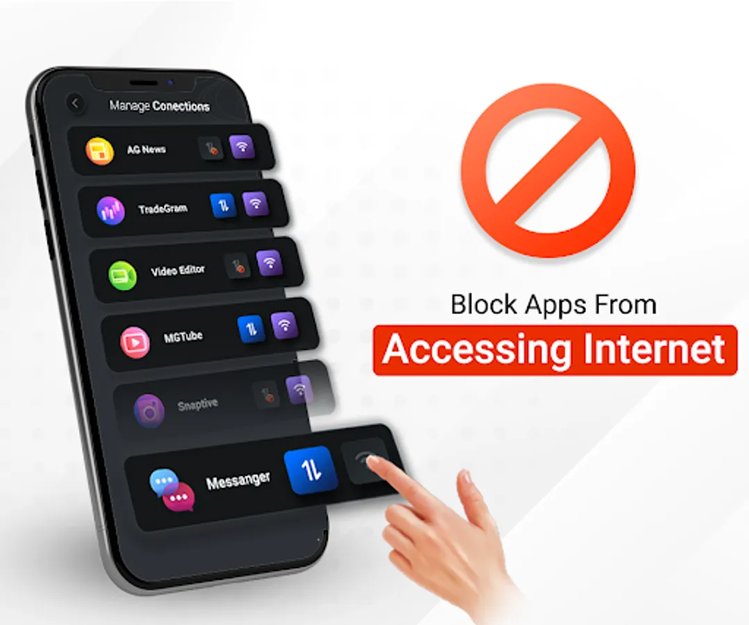 - Block ads on apps while you access it as you disallows access of internet usage.