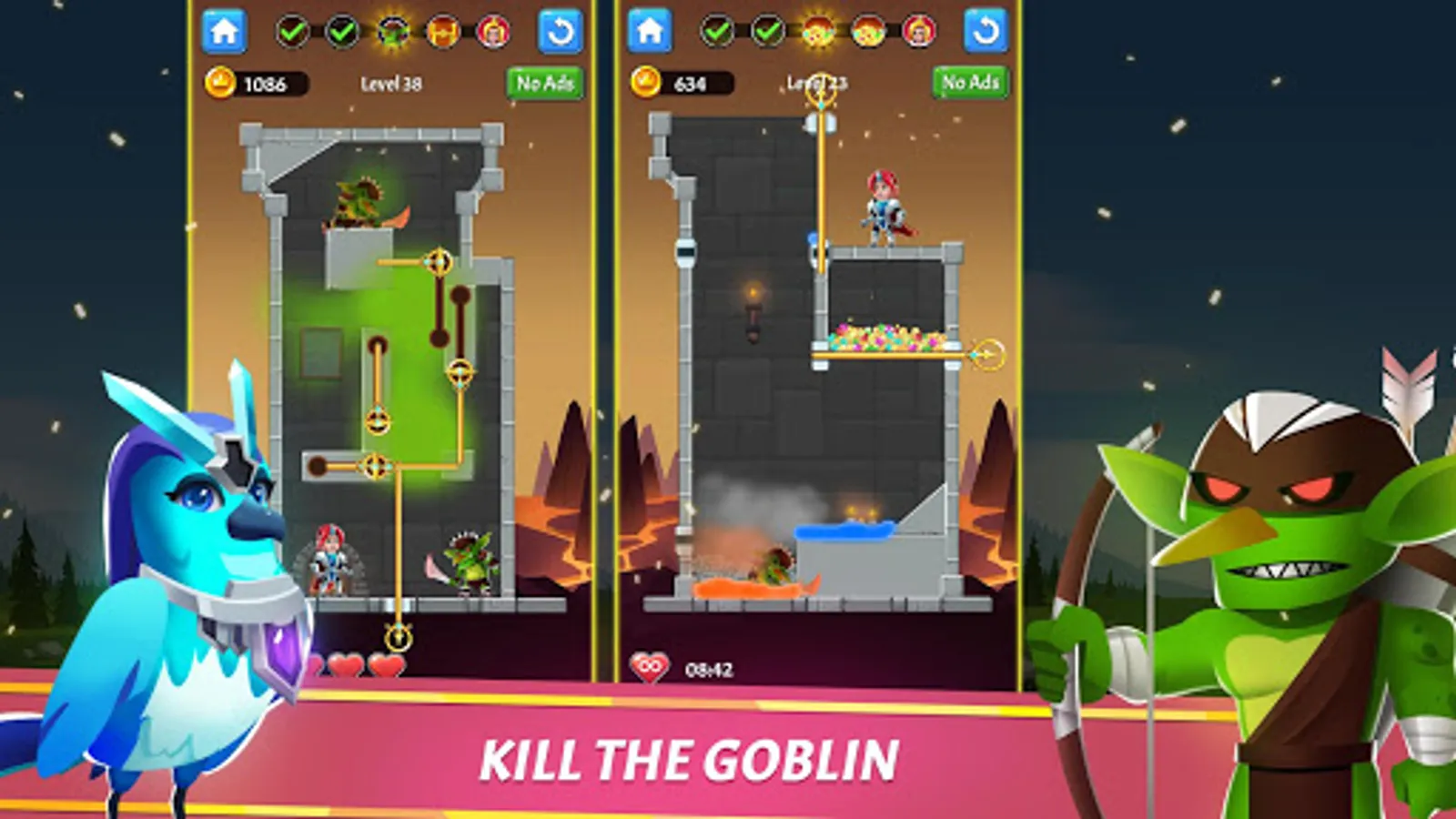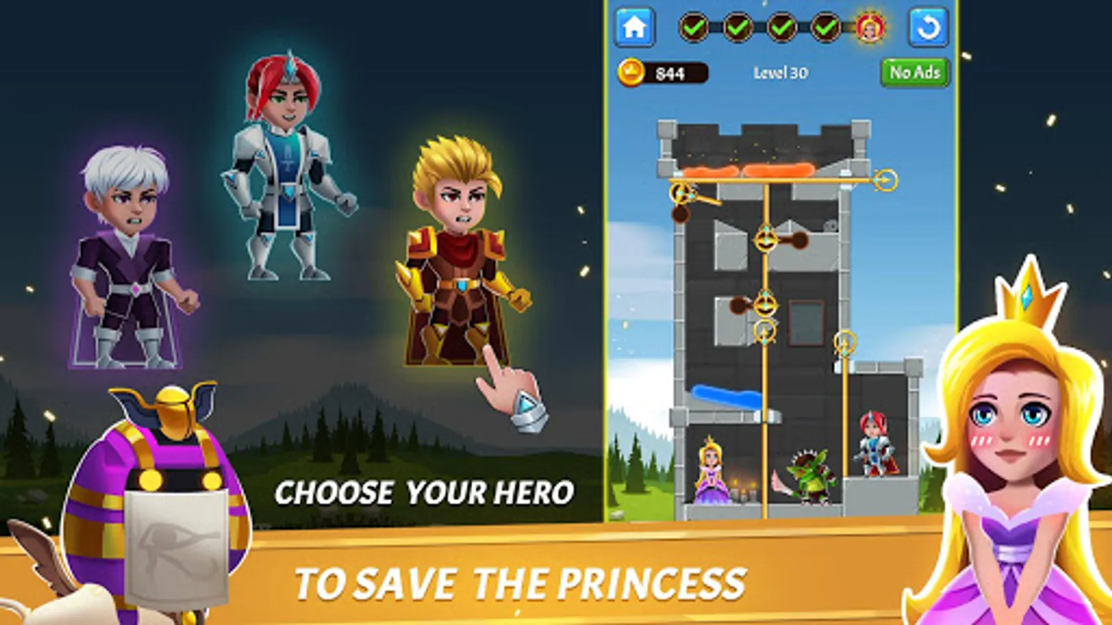 Kingdom Quest Hero Rescue is a simple dungeon puzzle game where each level is physically divided into portions with pins that you can pull with a swipe of its tips.