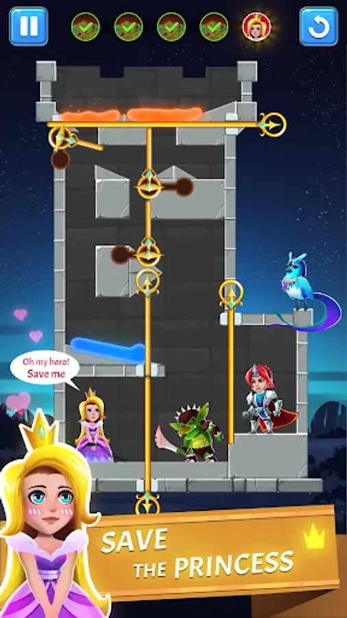 Pull the sticks to make a safe path to the princess. You will become a rich hero in this latest rescue game.