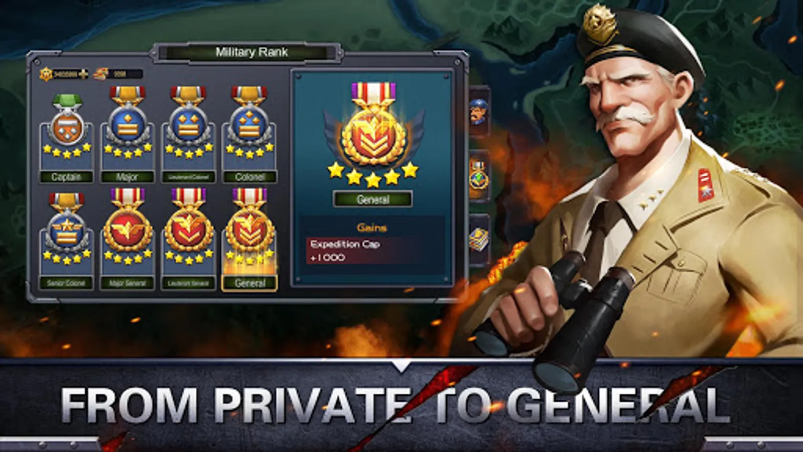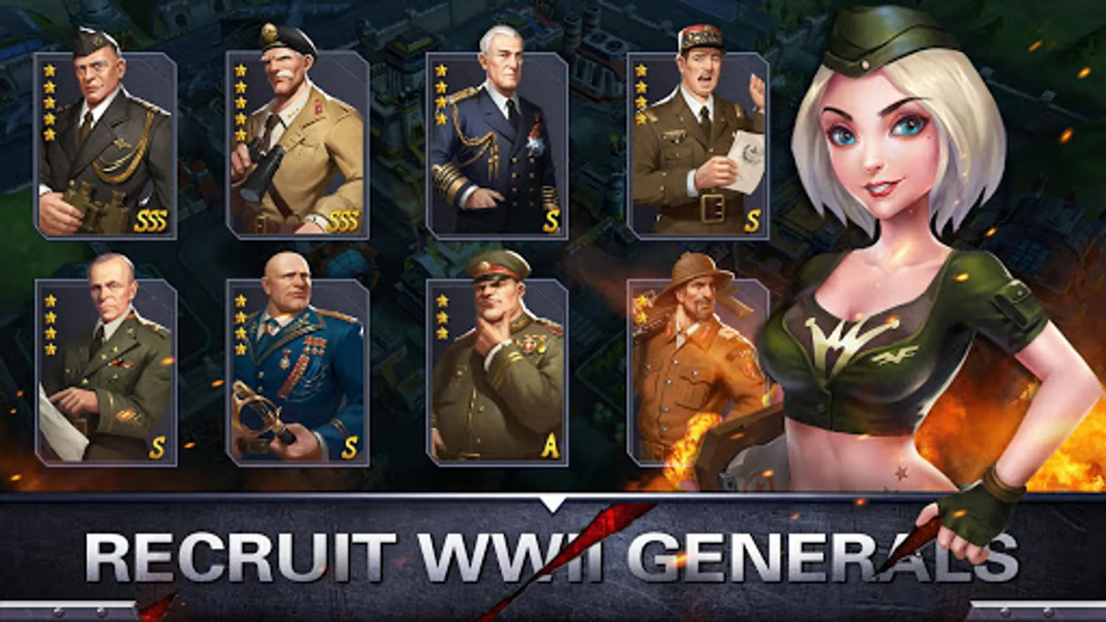 Recruit famous generals from World War 2, level up and deck out your Hero, craft legendary weapon to rise above the competition.